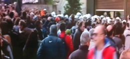 και φώναζαν συνθήματα κατά του Χανς Γιόακιμ Φούχτελ, που θα μιλήσει στο ελληνογερμανικό συνέδριο, στη διεθνή έκθεση Θεσσαλονίκης. Στο σημείο βρίσκεται ισχυρή αστυνομική δύναμη προκειμένου να προστατέψει τον Γερμανό υφυπουργό Εργασίας.