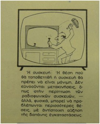 Σε αυτό το πλαίσιο, το περιοδικό «Εικόνες» της Ελένης Βλάχου κυκλοφορούσε με ένα ρεπορτάζ, που έκανε ιδιαίτερη αίσθηση. Δώδεκα σκίτσα, περιγράφουν πλήρως τις κατάλληλες κινήσεις που έπρεπε να κάνει κάποιος, ώστε η τηλεόρασή του να είναι πιο αποτελεσματική. Από τις... μετακινήσεις της συσκευής που δεν συνιστώνται, ως και τη σωστή τοποθέτησή της σε σχέση με το κτίριο του Ο.Τ.Ε., όλα φαίνονται εντελώς μακρινά περίπου μισό αιώνα μετά.