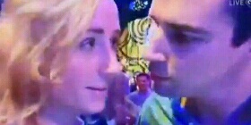Οπως φαίνεται στο ολίγων δευτερολέπτων βίντεο, η γυναίκα όχι απλώς αρνείται το φιλί -με ένα αμήχανο χαμόγελο- αλλά ήδη αρχίζει να... απομακρύνεται.
