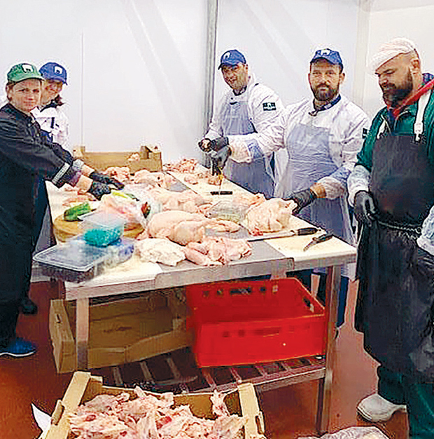 Μέλη της (παγκόσμιας πρωταθλήτριας) εθνικής μας ομάδας κρεοπωλών, η οποία προπονείται σκληρά ώστε να διεκδικήσει τη δεύτερη κατά σειράν πρωτιά στο World Butchers’ Challenge, τον παγκόσμιο διαγωνισμό κρεοπωλών, που θα διεξαχθεί στo Σακραμέντο της Καλιφόρνιας, στη θρυλική αρένα των Sacramento Kings, χωρητικότητας 17.000 θεατών.