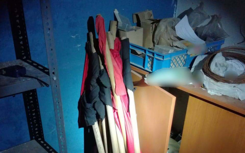 Σύμφωνα με την αστυνομία στο εσωτερικό του κτιρίου βρέθηκαν κοντάρια, πυροσβεστήρες και κράνη.