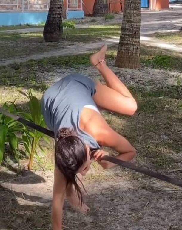 Στο βίντεο, το οποίο τραβά ο Σάκης Τανιμανίδης, η σύζυγός του, φορώντας ένα γκρι μπλουζάκι και ένα άσπρο μπικίνι, προσπαθεί να ισορροπήσει επάνω σε ένα σκοινί. Κι ενώ τα καταφέρνει στα δύο πρώτα βήματα, στην συνέχεια πέφτει και προσγειώνεται με το κεφάλι επάνω στο σκοινί και βάζοντας το χέρι της στο έδαφος για να μην τραυματιστεί περισσότερο. Η Χριστίνα Μπόμπα χτύπησε στο χέρι της και δείχνοντας τις μελανιές στον σύζυγό της, εκείνος της είπε: «Θα το θυμάσαι για πολύ καιρό».