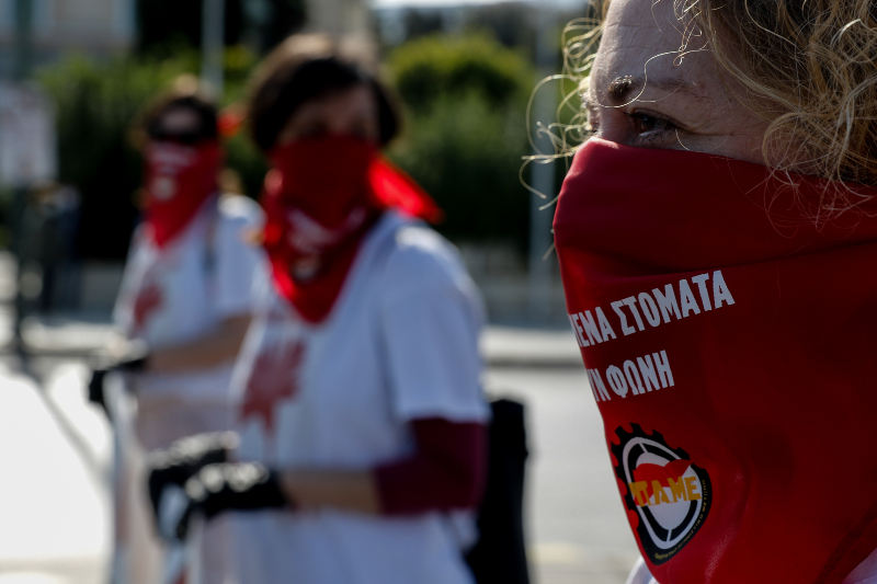 «Τα καλυμμένα στόματα έχουν φωνή» / Φωτογραφία: EUROKINISSI/ΚΟΝΤΑΡΙΝΗΣ ΓΙΩΡΓΟΣ