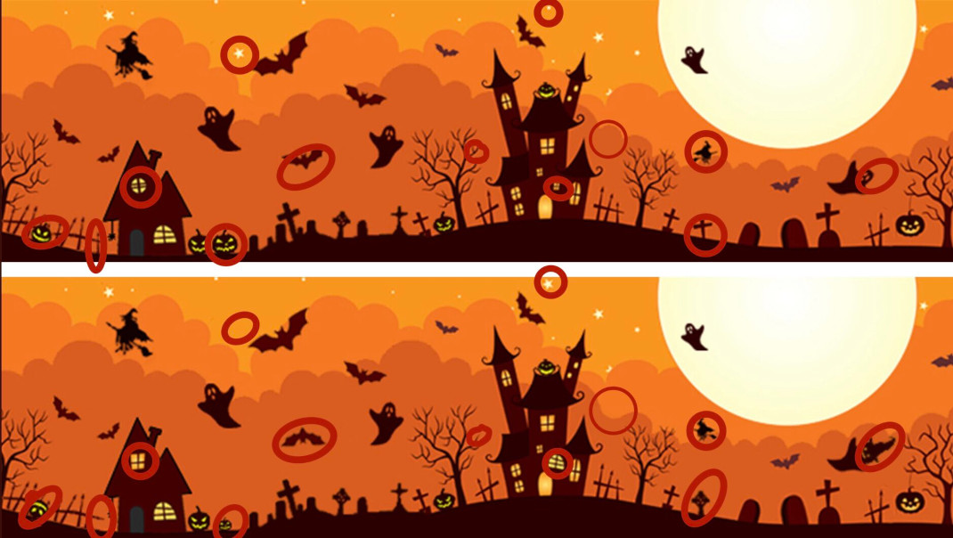 Οι πιο αετομάτηδες χρήστες του κοινωνικού δικτύου βρήκαν μέχρι και 13 διαφορές ανάμεσα στις δύο εικόνες που περιλάμβαναν κολοκύθες, τάφους, μάγισσες σε σκουπόξυλα, φαντάσματα, τρομακτικά σπίτια κ.α.