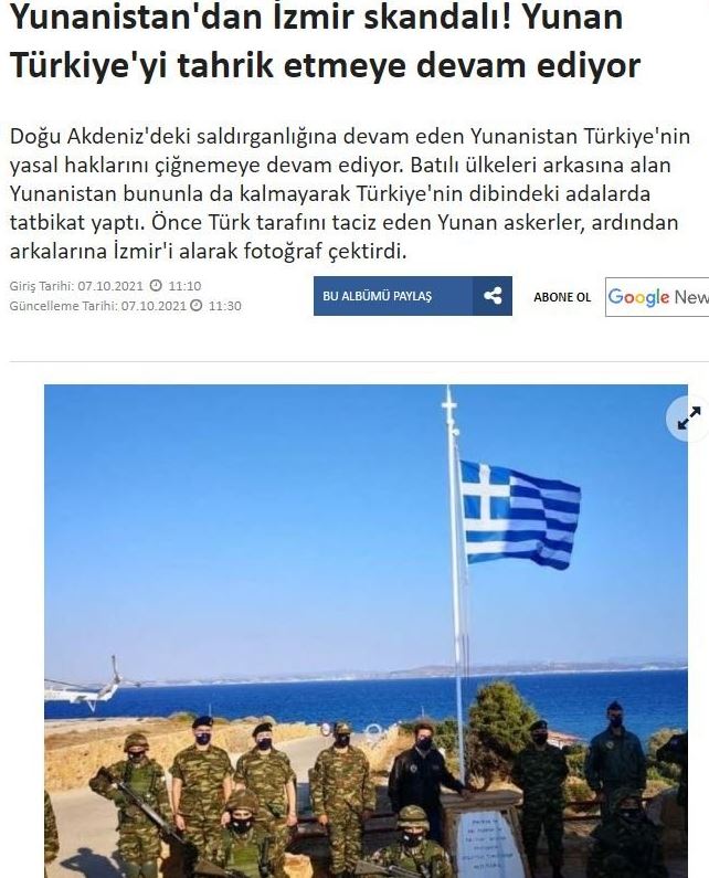 Αντίστοιχα, το φιλο-κυβερνητικό κανάλι “Α Χαμπέρ” μεταδίδει ότι “Σκάνδαλο στη Σμύρνη από την Ελλάδα! Η Ελλάδα συνεχίζει να προκαλεί την Τουρκία”.