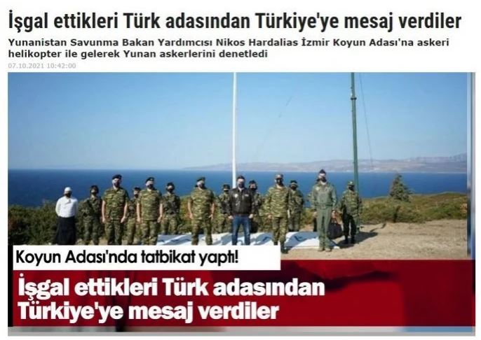 Μερίδα του Τύπου, σύμφωνα με τον τηλεοπτικό σταθμό, υποστηρίζει ότι η Ελλάδα θέλησε να δώσει μήνυμα από το… τουρκικό, όπως το χαρακτηρίζει, νησί που “έχουν καταλάβει οι Έλληνες”.
