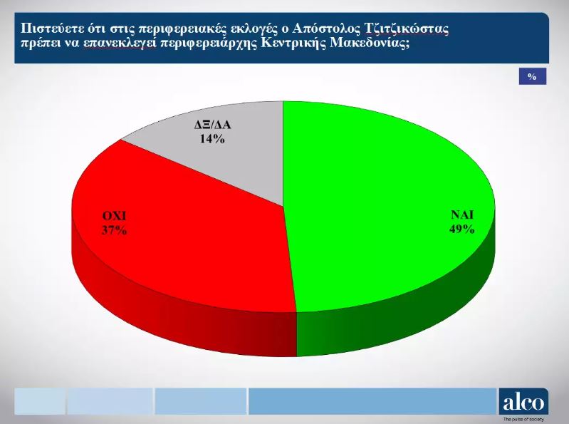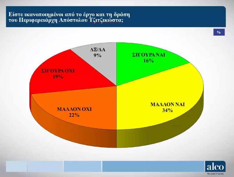 Παντοδυναμία του Απόστολου Τζιτζικώστα και μεγάλη ικανοποίηση από το έργο του στην Περιφέρεια Κεντρικής Μακεδονίας δείχνουν τα αποτελέσματα της δημοσκόπησης της Alco.