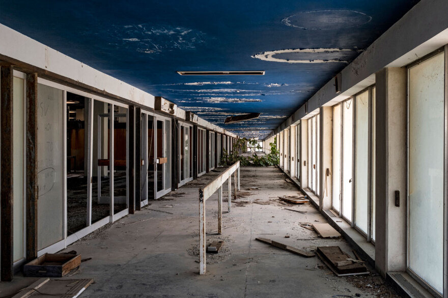 Στο εσωτερικό του εγκαταλελειμμένου τερματικού, η εικόνα θυμίζει σκηνικό