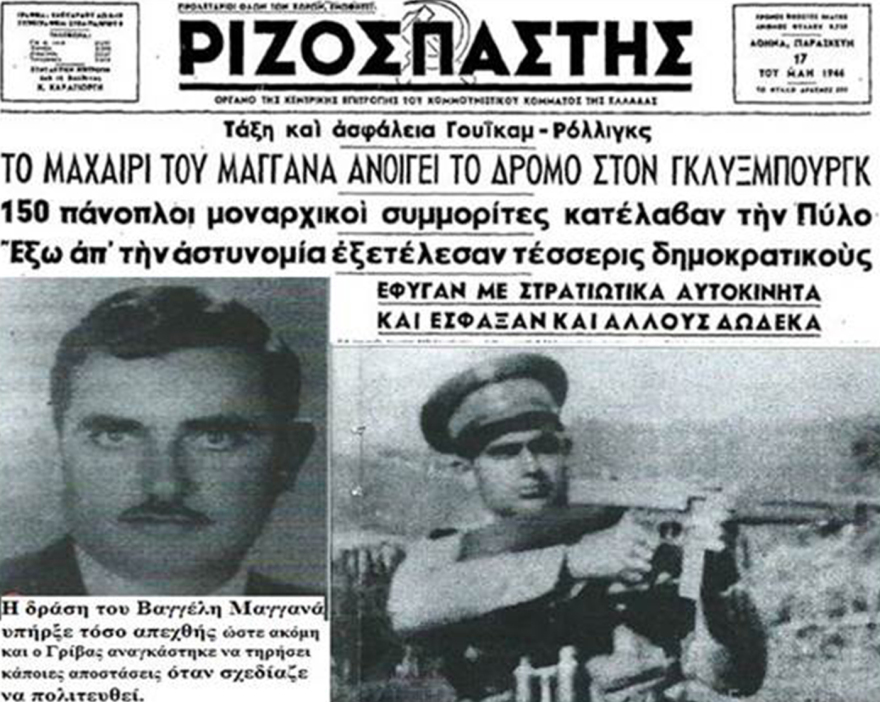 Ένα από τα πλέον πολυσυζητημένα πρόσωπα της περιόδου 1944-1946, με δεκάδες αναφορές και σε σχόλια αναγνωστών μας, με τον οποίο δεν έχουμε ασχοληθεί μέχρι σήμερα ήταν ο Ευάγγελος (Βαγγέλης) Μαγγανάς, ένας άνθρωπος που από καραγωγέας στη Μεσσηνία έγινε αμείλικτος διώκτης των κομμουνιστών, στράφηκε εναντίον του κράτους, δικάστηκε 7 φορές και τελικά αθωώθηκε, για να αποσυρθεί από την «ενεργό δράση» και να σκοτωθεί σε τροχαίο το 1966, όπου και γι’ αυτό έχουν γραφτεί διάφορα.