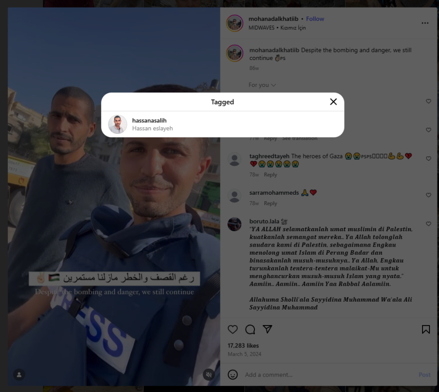 Ιδιαίτερη εντύπωση προκάλεσε το γεγονός ότι σε δημοσιεύσεις του χαρακτήριζε τον δημοσιογράφο και γνωστό στέλεχος της Χαμάς, Hassan Eslaieh, ως «φίλο και σύντροφο από την αρχή του πολέμου».