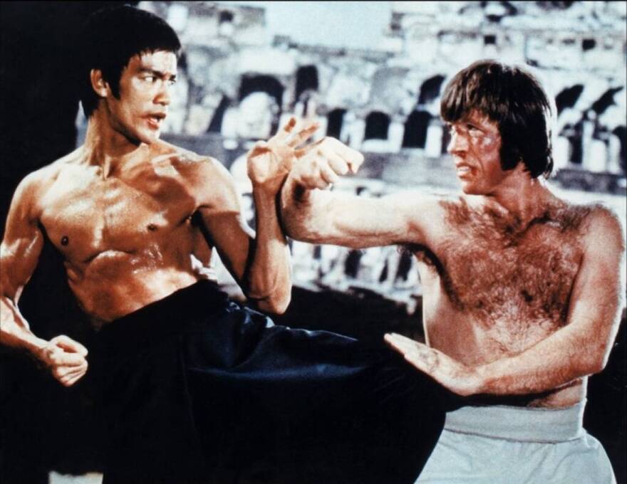 Ο Τσακ Νόρις με τον Μπρους Λι στην θρυλική μονομαχία στο Κολοσσαίο