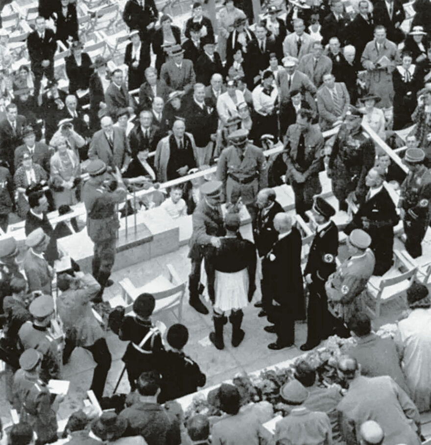 Ετσι εμφανίστηκε μπροστά στον Χίτλερ κατά την τελετή έναρξης των Αγώνων. Με τη θρυλική άσπρη φουστανέλα και το σκούρο γιλέκο του, απαθανατίστηκε να του προσφέρει ένα φουντωτό κλαδί ελιάς που κρατούσε στο δεξί του χέρι. Η φορεσιά αυτή έχει δωρηθεί και φυλάσσεται σήμερα στο Εθνικό Ιστορικό Μουσείο της Αθήνας.