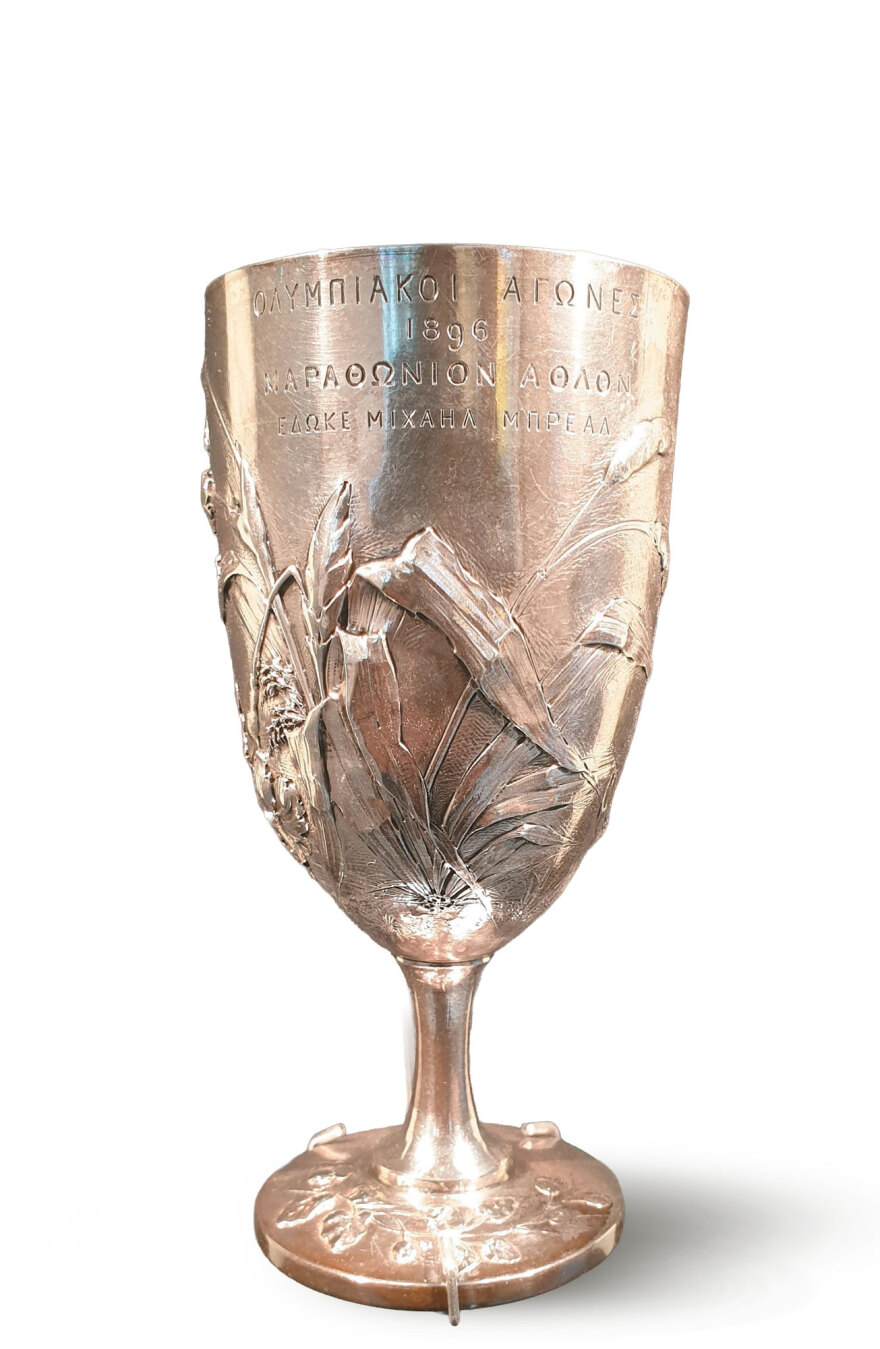 Το ασημένιο κύπελλο του Σπύρου Λούη, νικητή του Μαραθωνίου στους πρώτους Ολυμπιακούς Αγώνες της Αθήνας που σχεδίασε ο Μισέλ Μπρέαλ,