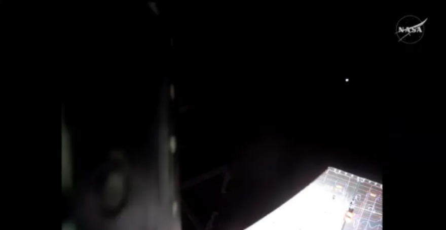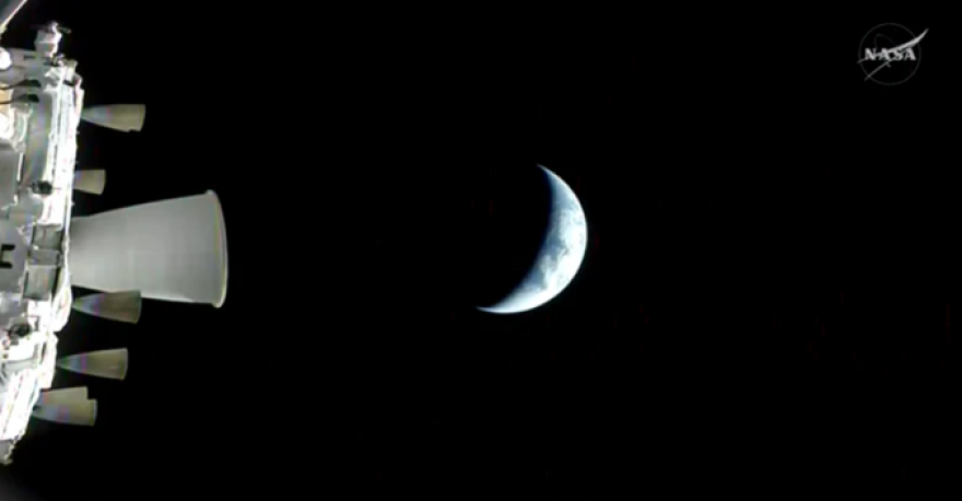 Από τη ζωντανή μετάδοση της αποστολής, η Γη απεικονίζεται σε σχήμα ημισελήνου: