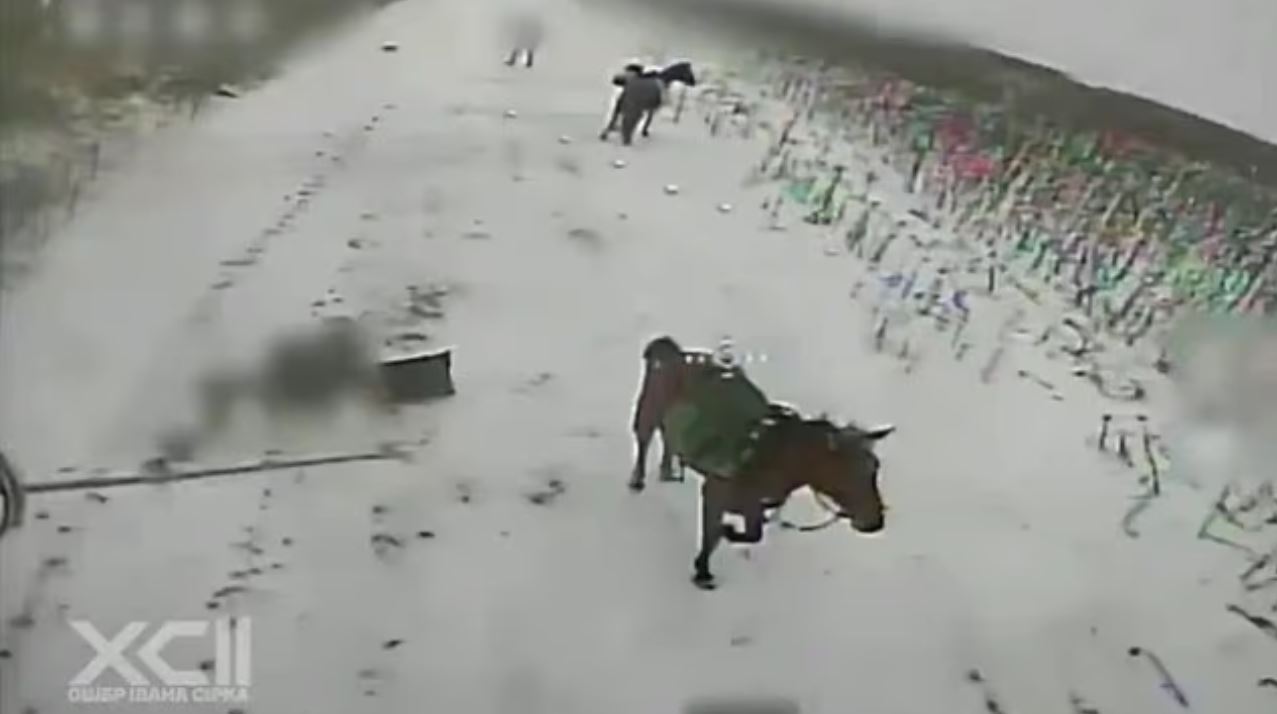 άλογο τραυματίστηκε ή σκοτώθηκε από την έκρηξη μαζί με τον Ρώσο στρατιώτη που